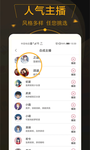 真人配音阵容:海量真人成品录音可直接导出,风格多样,效果震撼