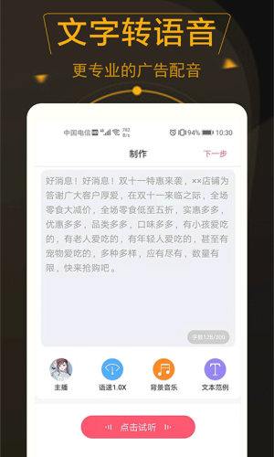 广告配音师:是一款文字转语音的便捷配音工具,帮您创作个性配音作品。