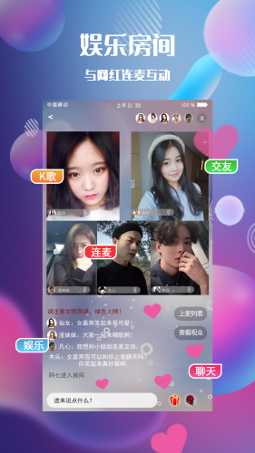 -娱乐房间:趣味直播,才艺秀不停。还可以与网红同屏互动,K歌、嗨聊!