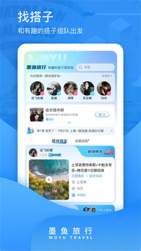 1、打开《墨鱼旅行》APP,在首页的“搭伴”中选择感兴趣的人;