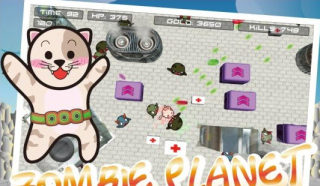 《僵尸星球 Zombie Planet》是一款双摇杆射击游戏。游戏采用3D俯视角度,玩家需要在游戏中控制一只全身武装的猫咪,在僵尸浪潮中生存下来。猫咪的枪支弹药都是可以升级的,游戏中会掉落许多金币以及各种各样的道具,收集它们你会变得更强