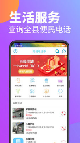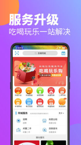 百缘同城一款涵盖外卖、团购、餐饮、预约服务、跑腿等业务需求的稳定的app。