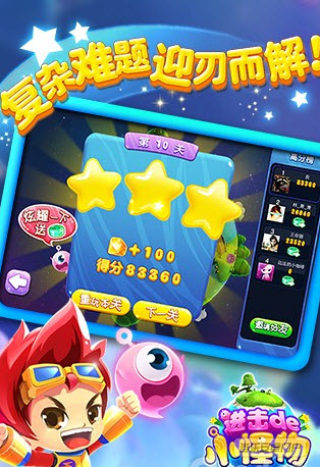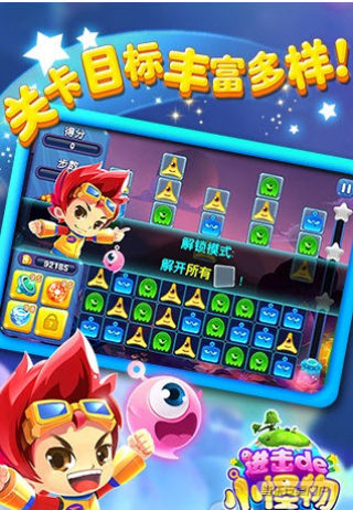 爱不释手的全新三消游戏,超萌外星小怪物来袭!精美绚丽的画面,趣味十足的关卡,丰富多样的玩法,强力炫酷的道具,助您和可爱的小怪物们一起体验星际大冒险!和你的朋友们比一比,看谁能飞到更美的新星球!