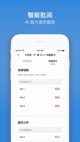 为教师提供海量优质的英语诊断评价资源,并通过人工智能语音评分技术为教师的教学减负,大数据精准的学情诊断为教师的教学增效。
