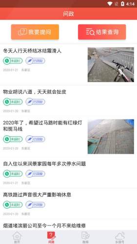 “问政”为群众反映问题的政务服务功能,网民可以将遇到的问题反映至区长或区委书记,并通过查询码对问题进行结果查询。