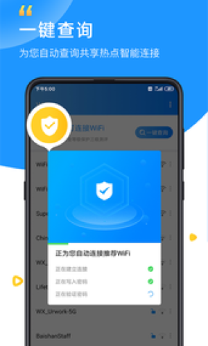 【便捷】点击一键查询,秒速发现附近共享热点,自动为您连接推荐WiFi,操作简单,上网就是这么轻松。