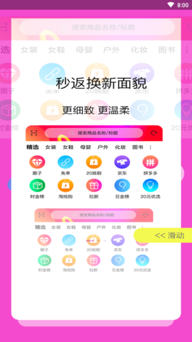 秒返app,这是一款非常不错的手机购物应用。产品品种丰富,价格实惠,质量绝对有保证。用户可以直接在平台上搜索优惠券,找到自己想要的产品。新人登记时可以获得现金奖励。折扣太大了,你随时都可以省钱!