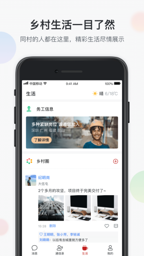 和安乡村app,广西乡村网上服务、沟通平台,提供生活聊天、附近资讯、通讯录、乡村公告等多种内容,消息传递安全,内容丰富,为乡村的小伙伴带来优质生活服务。