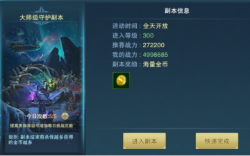 3、每日完成守护副本可以获得大量金币,限定时间内击杀越多的怪物,就可以获得越多的金币奖励。