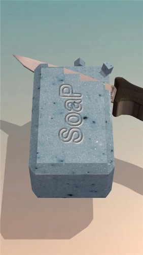 玩家触摸屏幕从上往下滑动,即可削下一层圆润的肥皂,玩家需要用刀将散落的肥皂块都拨开后,再继续切割,直到清空所有零散的肥皂块,即刻呈现出雕刻精美的形状。