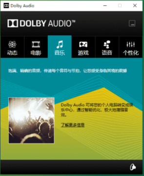 Dolby Audio是一款音效调节软件,能够对大部分计算机笔记本电脑进行音效增强,能够帮助用户调节输出音频的各项属性,效果出色功能十分强大,有对自己电脑本身音效不满意的朋友不要错过了,欢迎下载使用!