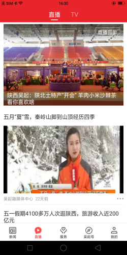 开设了新闻、直播、电视、广播、服务、“吴起号”等栏目,