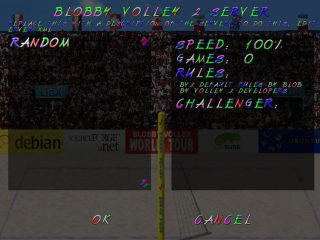 波比排球2 Blobby Volley 2是一款好玩的体育休闲游戏。玩家需要利用移动和跳跃把排球顶到对方区域地上即可得分。游戏能联网和遥远的朋友对战,也可以利用本地LAN与附近的好友一起玩耍。