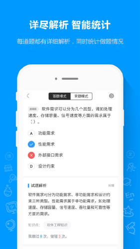 提供多种做题模式,答题模式、背题模式、顺序练习、随机练习。