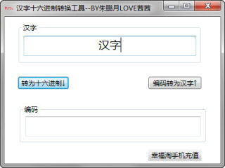 运行软件后,输入相应的文字或者字符点转为十六进制或者编码转为汉字即可。