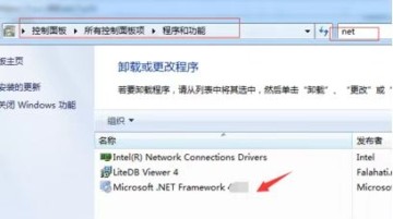 如图在电脑的控制面板的卸载程序中搜索 Microsoft.NET Framework 进行卸载。