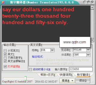 网络上有很多在线数字翻译器,方便实用,今天我们给大家介绍的是一款单机数字翻译器,数字翻译器主要目的在于方便需要做英文fapiao的朋友以及从事会计出纳的人员,本软件只根据香港公司商务英语惯用方式自动生成英文金额。中文金额根据现行会计金额规则自动翻译。