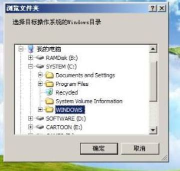 要使用ERD来管理硬盘上面的windows系统(一般我们都是装在C盘吧?),就需要先“设定目标管理的windows”,选择那个项目。点击后,弹出对话框,在其中选择你系统安装的地方,比如我是安装在 C盘的windows文件夹。就行了。