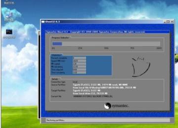 这个。。。。不用说了吧。在PE里面,直接点击运行ghost32.exe,进入ghost程序。。。。。。。后面的操作,就不是我这个教程该讲的了。不会ghost的,可以去下载,参考我的《操作系统的轮回》。里面有详细教程。看图,这个是我正在恢复系统: