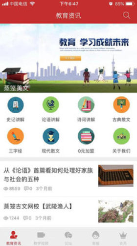 学生们可以在这里受到国学熏陶,支持是即将届,论语讲解,诗词讲解,古典散文,三字经,现代散文等,内容丰富齐全,趣味化学习
