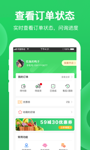 主要提供的产品有蔬菜水果、肉禽蛋、水产海鲜、米面粮油等,不设定起送门槛,没有配送费,新人专享38元红包。