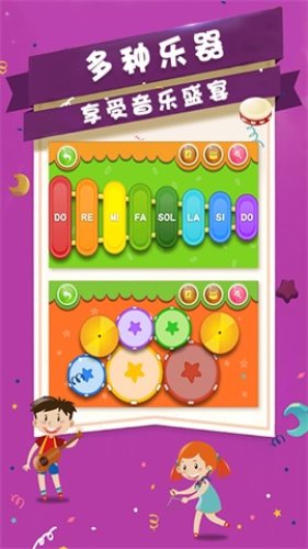 它能够提供多种多样的乐器,每一种乐器都有真实的演奏声音哦,家长陪同宝宝一起玩还可以增进亲子感情