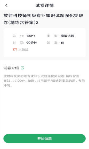 放射医学师题库APP是一个针对放射医学师考试备考的题库,涵盖了该考试的热点、难点和常考点的考试模拟题库,是您学习和拿高分的好帮手。