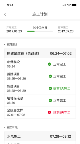 所有工序过程可视化、流程标准化,客户只需手机端跟进进度和每个施工任务的成果。