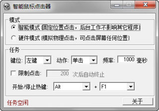 先将鼠标移动到目标点,然后按下开始热键即可,这时便可以把鼠标移开,而且可进行其它操作,此时可将目标窗口最小化,不妨碍其它任务。如果有些位置点不到,这时可以选择硬件模式,不过任务执行过程中就不能操作电脑了。