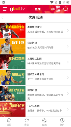 高清直播免费看,百万红包欢乐送,看直播抢红包,尽在gball.tv,作为业界首属一指的体育直播平台,gball.tv一直致力于提升广大体育迷全方位的娱乐体验。