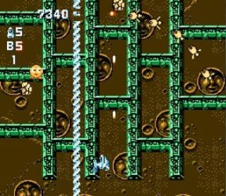 游戏中SELECT键能够调整战机速度,速度分四个等级。
