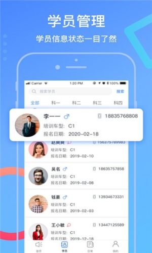 产品集学员管理、教学管理为一体,并开发了驾考专业课程,帮助教练员提升学员的学习效率的同时,增加教练员的收入。