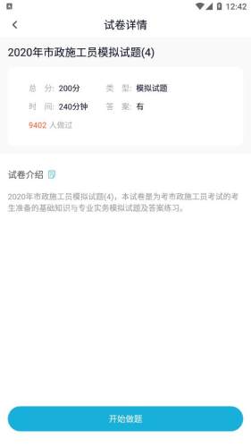 针对施工员的题库,包含了水电、装饰、市政、水利、土建、设备安装、机电电气等考试大纲所确定的范围。更有历年真题集模拟试题题型,题库中的试题全真模拟真实的考试,是各位考生学习乃至通过考试的好帮手。
