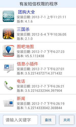 (4) 自己选择权限(比如直接拨打电话,读联系人数据,等等),然后扫描看哪些软件具有这些权限