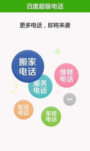 百度超级电话具有2亿黄页电话号码。经过细心筛查和不断纠错,趋近于“词典”般准确和可靠。同时支持号码归属地及号码身份查询