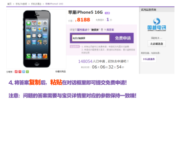 3.点击免费试用后会跳入心仪宝贝免费申请试用界面,填写答案后点击免费申请