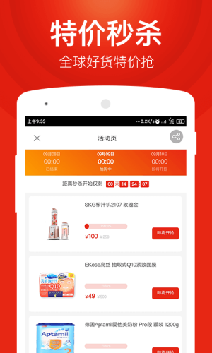 3、海外购击杀:限时秒杀更性价比高,每天更新几款促销特惠产品正品网购,跨境电商直邮,急速送货;