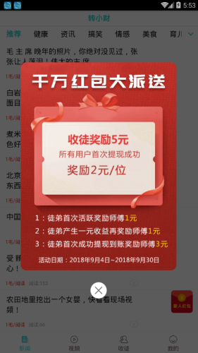 转小财app,一款看新闻赚佣金的平台,目前平台上的福利和红包非常丰厚,现在只要注册就能获得现金红包,只需要满2元即可提现,没有任何手续费,操作十分简单,不管老少都能操作,欢迎感兴趣的小伙伴下载!