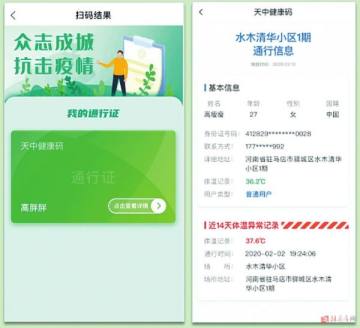 居民打开“咱的驻马店”App,点击“扫一扫”,即可查看“我的通行证”,在出入各场所时向管理员出示,并使用“扫一扫”进行扫码登记。