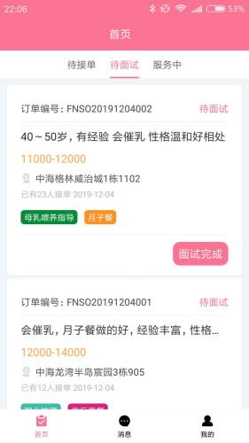 维其月嫂端app,用户可以注册之后填写自己的上岗信息和相关证件,完成之后用户就可以在平台上接单了。这里有超多家政相关的订单任务,用户可以根据自己的情况来选择,订单十分丰富,完成之后马上为用户结算,非常方便!