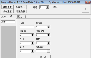 2、目前支持三国群英传2原版、楚汉英豪传、飞鹰版、煌星(水浒)版、风筝版、没有心情版、隋唐争霸、天使版、春天版、陈沐三国、路丰版、孤独战神、夏傲版以及修正版的存档修改。
