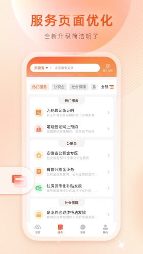 皖事通安康码app,便捷的掌上办事平台,提供充足在线办事服务,涵盖多种业务办理功能,能偶在线申请健康码,轻松获取最新信息,享受便捷的生活服务。