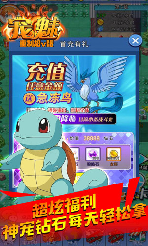 宠魅重制超V版,一款精彩的福利版宠物对战游戏。游戏重现口袋世界,超多宝可梦精灵等你收集,自由进化培养你的精灵,挑战各个道馆,成就最强训练师。