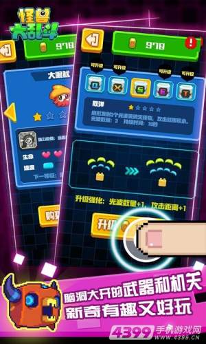 怪兽大乱斗BT版,游戏结合了吃豆人和打飞机等不同玩法,怪兽大乱斗提供给大家的是破解修改版本,免费使用钻石,想要升级你的角色,武器,或者解锁皮肤都可以。