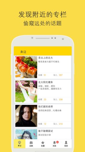 - 发现身边的专栏,并在里面浏览内容、发布内容