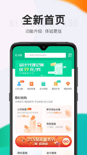 顶呱呱APP是一个为企业老板提供在线寻找专业服务、在线下单、业务进度跟踪、财税报表等快捷功能的一站式企业服务平台。