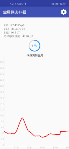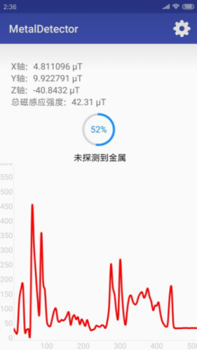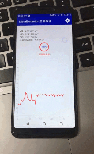 你可以在手机屏幕上看到当前传感器三轴的磁感应强度大小,同时可以看到进度条提示。