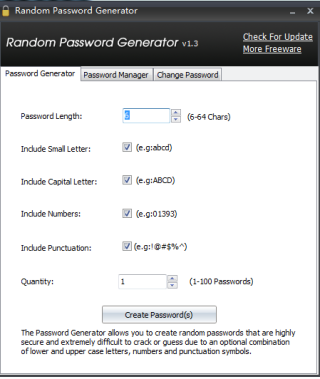 打开随机密码生成器,然后单击检查更新主界面的右上方。