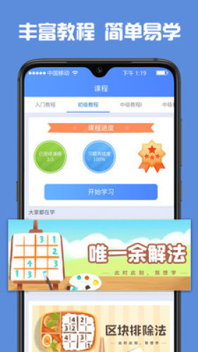 1. 1分钟教程:应用提供从初级到顶级的解题技巧教程,每个教程只需花1分钟即可掌握,数独从此不再烧脑。