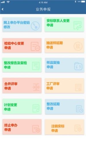 软件支持企业用户可线上办理自己的安标业务,在线查看各类标志的检测细则,安全业务办理信息,随时查看进度等等功能,申报更加轻松。